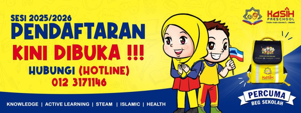 PENDAFTARAN KASIH PRESCHOOL Sila isikan semua maklumat Pendaftaran KASIH PreschoolKELAS ANAK PADA SESI TAHUN 2026- Pilih -KELAS 4 TAHUN - LAHIR 2022KELAS 5 TAHUN - LAHIR 2021KELAS 6 TAHUN - LAHIR 2020Adakah anak Tuan/Puan murid sedia ada ? Ya, anak saya murid sedia ada Tidak, anak saya pertama kali mendaftarBagaimana Tuan/Puan tahu mengenai KASIH Preschool ? Melalui Facebook Melalui Google Melalui kawan / keluarga Melalui guru/kakitangan KASIH PreschoolBAHAGIAN A - BUTIRAN MURIDNama Penuh MuridTarikh LahirNombor Mykid / Surat BeranakJantina Murid Lelaki PerempuanAgama Islam Kristian Buddha Hindu Lain-lainBangsa AddressAlamat Baris 1Alamat Baris 2BandarNegeriPoskodNegaraAfghanistanAland IslandsAlbaniaAlgeriaAmerican SamoaAndorraAngolaAnguillaAntarcticaAntigua and BarbudaArgentinaArmeniaArubaAustraliaAustriaAzerbaijanBahamasBahrainBangladeshBarbadosBelarusBelauBelgiumBelizeBeninBermudaBhutanBoliviaBonaire, Saint Eustatius and SabaBosnia and HerzegovinaBotswanaBouvet IslandBrazilBritish Indian Ocean TerritoryBritish Virgin IslandsBruneiBulgariaBurkina FasoBurundiCambodiaCameroonCanadaCape VerdeCayman IslandsCentral African RepublicChadChileChinaChristmas IslandCocos (Keeling) IslandsColombiaComorosCook IslandsCosta RicaCroatiaCubaCuraçaoCyprusCzech RepublicDemocratic Republic of the Congo (Kinshasa)DenmarkDjiboutiDominicaDominican RepublicEcuadorEgyptEl SalvadorEquatorial GuineaEritreaEstoniaEthiopiaFalkland IslandsFaroe IslandsFijiFinlandFranceFrench GuianaFrench PolynesiaFrench Southern TerritoriesGabonGambiaGeorgiaGermanyGhanaGibraltarGreeceGreenlandGrenadaGuadeloupeGuamGuatemalaGuernseyGuineaGuinea-BissauGuyanaHaitiHeard Island and McDonald IslandsHondurasHong KongHungaryIcelandIndiaIndonesiaIranIraqIrelandIsle of ManIsraelItalyIvory CoastJamaicaJapanJerseyJordanKazakhstanKenyaKiribatiKosovoKuwaitKyrgyzstanLaosLatviaLebanonLesothoLiberiaLibyaLiechtensteinLithuaniaLuxembourgMacao S.A.R., ChinaMacedoniaMadagascarMalawiMalaysiaMaldivesMaliMaltaMarshall IslandsMartiniqueMauritaniaMauritiusMayotteMexicoMicronesiaMoldovaMonacoMongoliaMontenegroMontserratMoroccoMozambiqueMyanmarNamibiaNauruNepalNetherlandsNew CaledoniaNew ZealandNicaraguaNigerNigeriaNiueNorfolk IslandNorth KoreaNorthern Mariana IslandsNorwayOmanPakistanPalestinian TerritoryPanamaPapua New GuineaParaguayPeruPhilippinesPitcairnPolandPortugalPuerto RicoQatarRepublic of the Congo (Brazzaville)ReunionRomaniaRussiaRwandaSaint BarthélemySaint HelenaSaint Kitts and NevisSaint LuciaSaint Martin (Dutch part)Saint Martin (French part)Saint Pierre and MiquelonSaint Vincent and the GrenadinesSamoaSan MarinoSao Tome and PrincipeSaudi ArabiaSenegalSerbiaSeychellesSierra LeoneSingaporeSlovakiaSloveniaSolomon IslandsSomaliaSouth AfricaSouth Georgia/Sandwich IslandsSouth KoreaSouth SudanSpainSri LankaSudanSurinameSvalbard and Jan MayenSwazilandSwedenSwitzerlandSyriaTaiwanTajikistanTanzaniaThailandTimor-LesteTogoTokelauTongaTrinidad and TobagoTunisiaTurkeyTurkmenistanTurks and Caicos IslandsTuvaluUgandaUkraineUnited Arab EmiratesUnited Kingdom (UK)United States (US)United States (US) Minor Outlying IslandsUnited States (US) Virgin IslandsUruguayUzbekistanVanuatuVaticanVenezuelaVietnamWallis and FutunaWestern SaharaYemenZambiaZimbabweBAHAGIAN B - Maklumat Bapa / PenjagaNama Penuh Bapa/PenjagaNo Kad PengenalanNombor Telefon Bimbit (Whatsapp)EmailNama Facebook (Jika Ada)Alamat Kediaman Sama seperti kediaman murid Lain alamatAddressAlamat Baris 1Alamat Baris 2BandarNegeriPoskodNegaraAfghanistanAland IslandsAlbaniaAlgeriaAmerican SamoaAndorraAngolaAnguillaAntarcticaAntigua and BarbudaArgentinaArmeniaArubaAustraliaAustriaAzerbaijanBahamasBahrainBangladeshBarbadosBelarusBelauBelgiumBelizeBeninBermudaBhutanBoliviaBonaire, Saint Eustatius and SabaBosnia and HerzegovinaBotswanaBouvet IslandBrazilBritish Indian Ocean TerritoryBritish Virgin IslandsBruneiBulgariaBurkina FasoBurundiCambodiaCameroonCanadaCape VerdeCayman IslandsCentral African RepublicChadChileChinaChristmas IslandCocos (Keeling) IslandsColombiaComorosCook IslandsCosta RicaCroatiaCubaCuraçaoCyprusCzech RepublicDemocratic Republic of the Congo (Kinshasa)DenmarkDjiboutiDominicaDominican RepublicEcuadorEgyptEl SalvadorEquatorial GuineaEritreaEstoniaEthiopiaFalkland IslandsFaroe IslandsFijiFinlandFranceFrench GuianaFrench PolynesiaFrench Southern TerritoriesGabonGambiaGeorgiaGermanyGhanaGibraltarGreeceGreenlandGrenadaGuadeloupeGuamGuatemalaGuernseyGuineaGuinea-BissauGuyanaHaitiHeard Island and McDonald IslandsHondurasHong KongHungaryIcelandIndiaIndonesiaIranIraqIrelandIsle of ManIsraelItalyIvory CoastJamaicaJapanJerseyJordanKazakhstanKenyaKiribatiKosovoKuwaitKyrgyzstanLaosLatviaLebanonLesothoLiberiaLibyaLiechtensteinLithuaniaLuxembourgMacao S.A.R., ChinaMacedoniaMadagascarMalawiMalaysiaMaldivesMaliMaltaMarshall IslandsMartiniqueMauritaniaMauritiusMayotteMexicoMicronesiaMoldovaMonacoMongoliaMontenegroMontserratMoroccoMozambiqueMyanmarNamibiaNauruNepalNetherlandsNew CaledoniaNew ZealandNicaraguaNigerNigeriaNiueNorfolk IslandNorth KoreaNorthern Mariana IslandsNorwayOmanPakistanPalestinian TerritoryPanamaPapua New GuineaParaguayPeruPhilippinesPitcairnPolandPortugalPuerto RicoQatarRepublic of the Congo (Brazzaville)ReunionRomaniaRussiaRwandaSaint BarthélemySaint HelenaSaint Kitts and NevisSaint LuciaSaint Martin (Dutch part)Saint Martin (French part)Saint Pierre and MiquelonSaint Vincent and the GrenadinesSamoaSan MarinoSao Tome and PrincipeSaudi ArabiaSenegalSerbiaSeychellesSierra LeoneSingaporeSlovakiaSloveniaSolomon IslandsSomaliaSouth AfricaSouth Georgia/Sandwich IslandsSouth KoreaSouth SudanSpainSri LankaSudanSurinameSvalbard and Jan MayenSwazilandSwedenSwitzerlandSyriaTaiwanTajikistanTanzaniaThailandTimor-LesteTogoTokelauTongaTrinidad and TobagoTunisiaTurkeyTurkmenistanTurks and Caicos IslandsTuvaluUgandaUkraineUnited Arab EmiratesUnited Kingdom (UK)United States (US)United States (US) Minor Outlying IslandsUnited States (US) Virgin IslandsUruguayUzbekistanVanuatuVaticanVenezuelaVietnamWalli